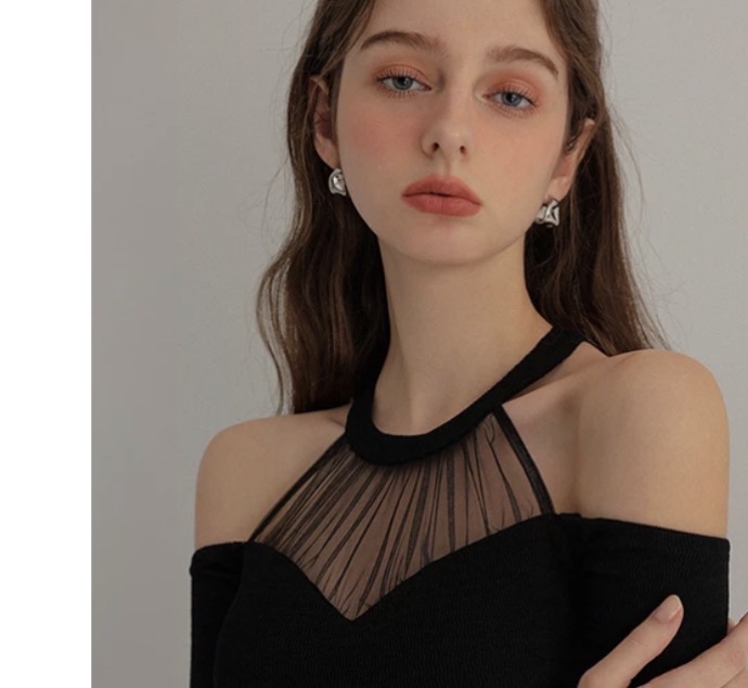 Mesh Halter Neck Cut out Shoulder Padded Top