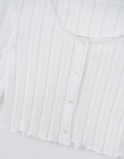Knit Round Neckline Sheer Ruffle Hem Button Cardigan