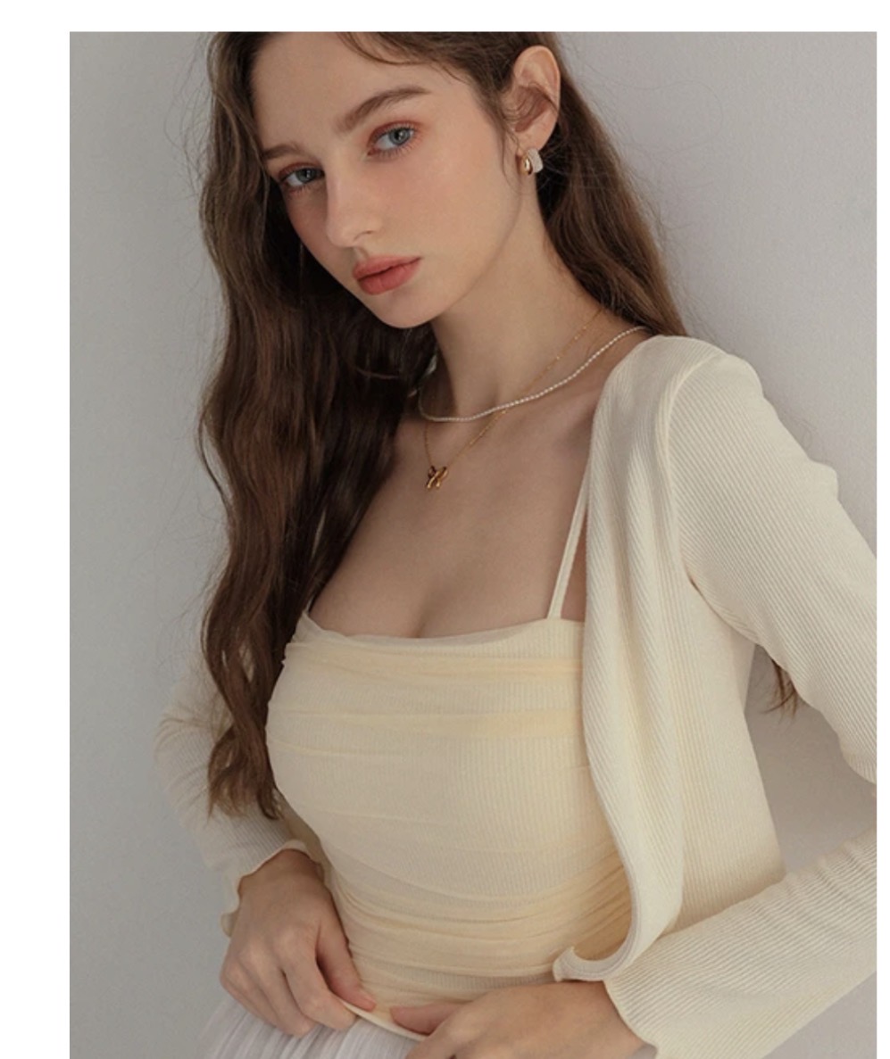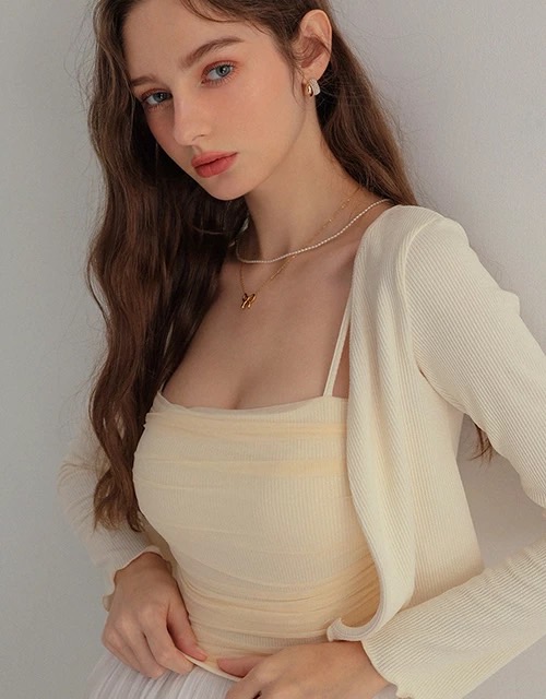 SET WEAR of Cardigan and Padded Bra Top Ruffles and Ruched Mesh ( Paddings)