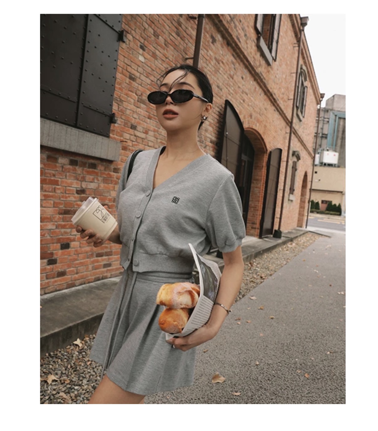 品牌LOGO刺繡V領澎袖短版開襟衫