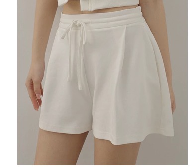 Cotton Drawstring Waist Soft Knit Pleated Shorts