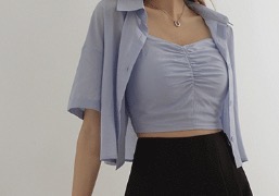 SET WEAR Button Up Crop Shirt and Ruched Cami Padded Bra Top