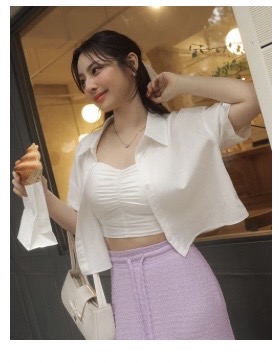 Product Description: [Outer] Button-front design [Inner] Removable padded cups / Elastic back / Adjustable shoulder straps / Ruched design