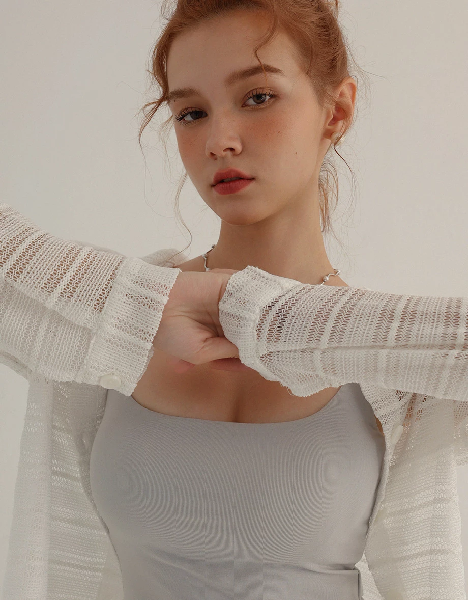 Bohemian Boho Style Sheer Striped Crochet Oversized Blouse