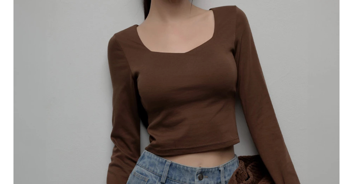Square Neck Long Sleeve Fitted Bra Top