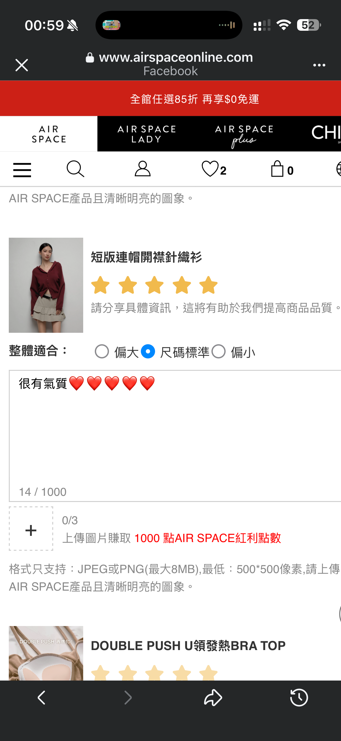 | 版型 | 貼身 | 1 | 2 | 3 | 4 | 5 | 寬鬆 |