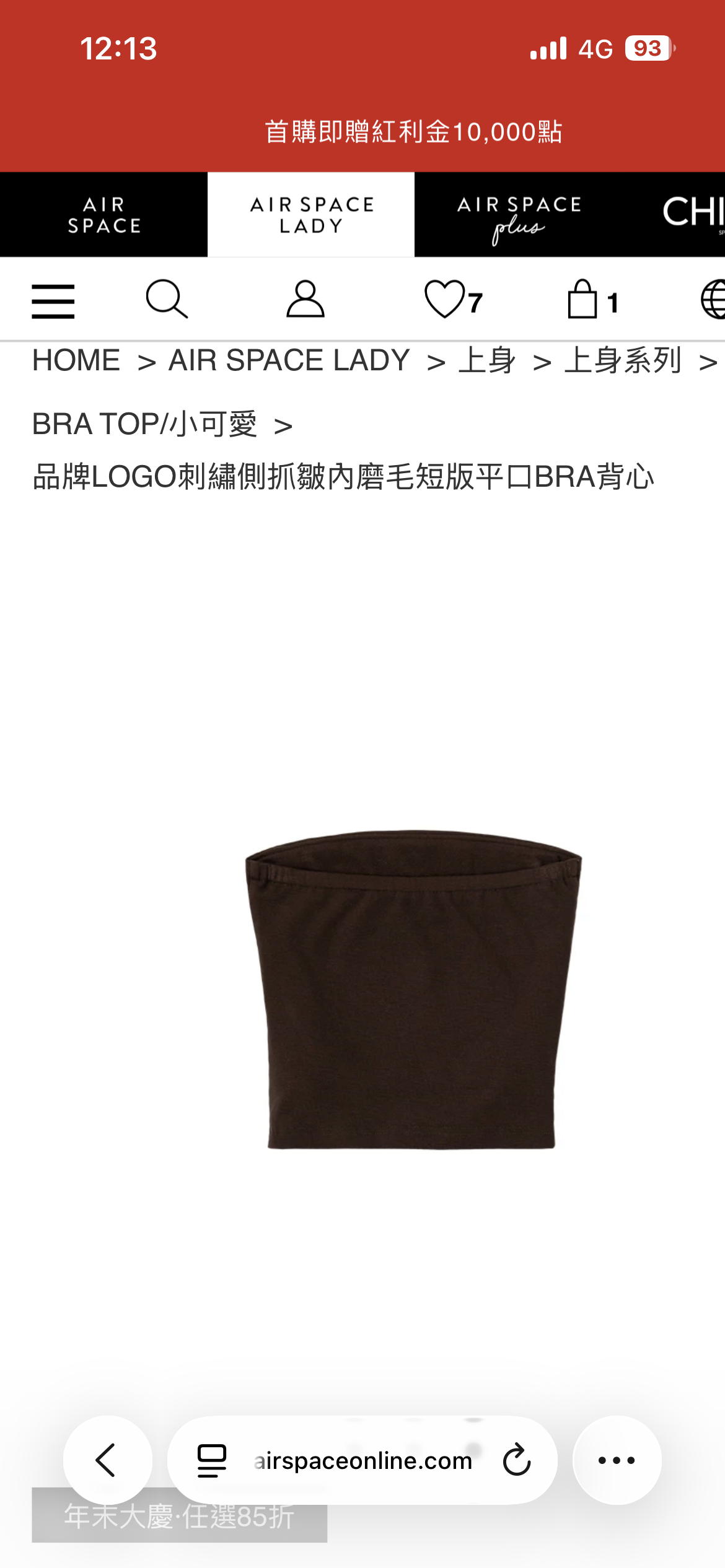 AIR SPACE Logo Embroidery Side Ruched Fleece Lined Bandeau Padded Tube Top