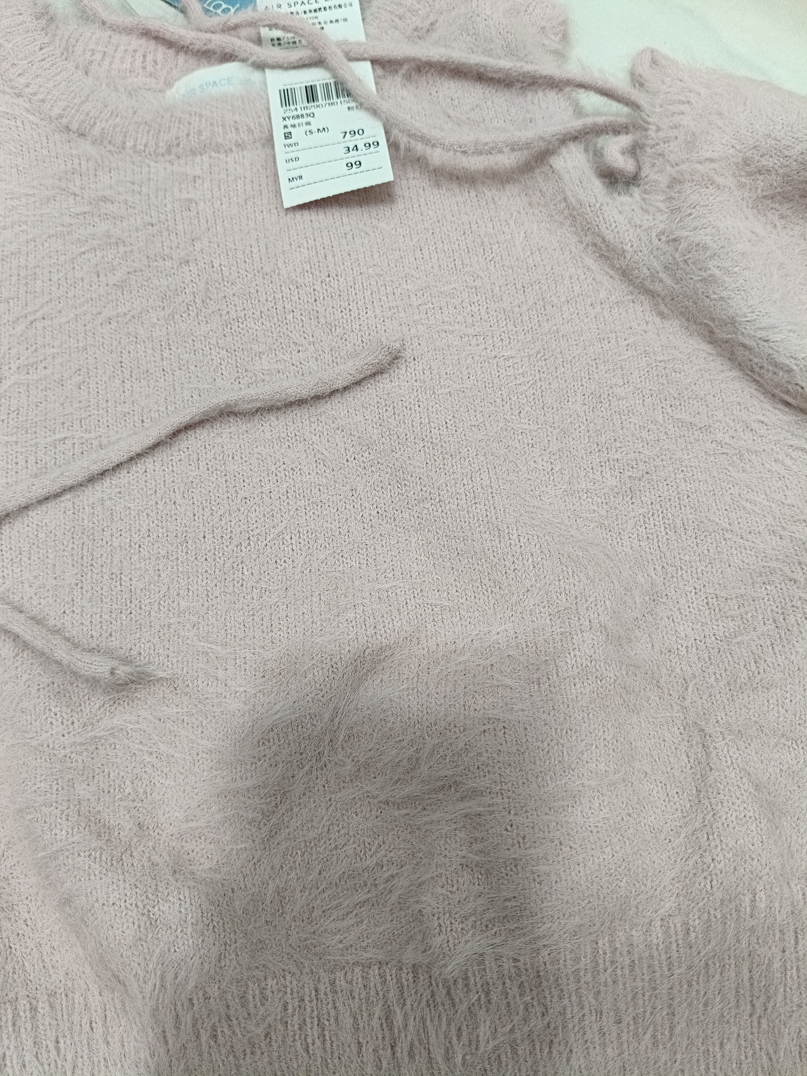 毛衣很柔軟不刺,挖肩+綁帶袖很有特色,短版顯比例,穿起來很好看!
