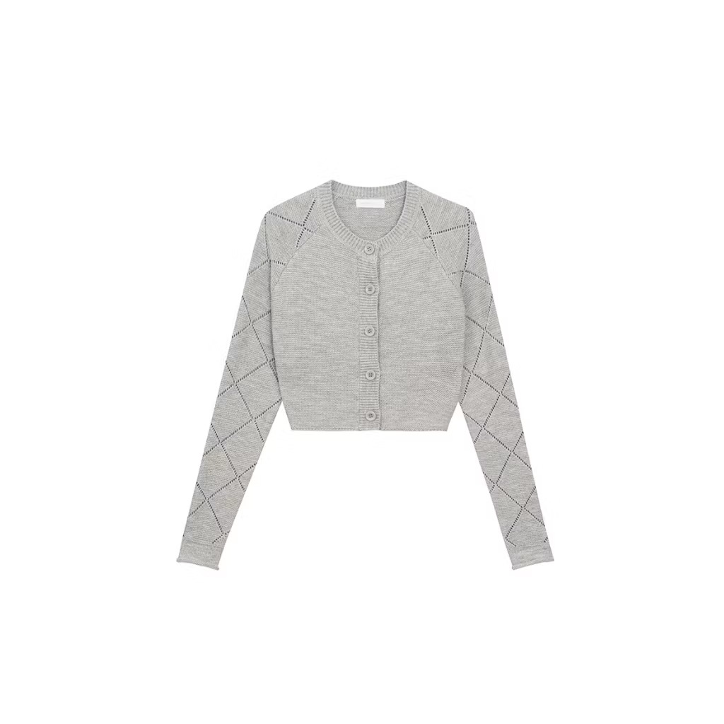 Argyle Knit Cropped Cardigan with Button Detail