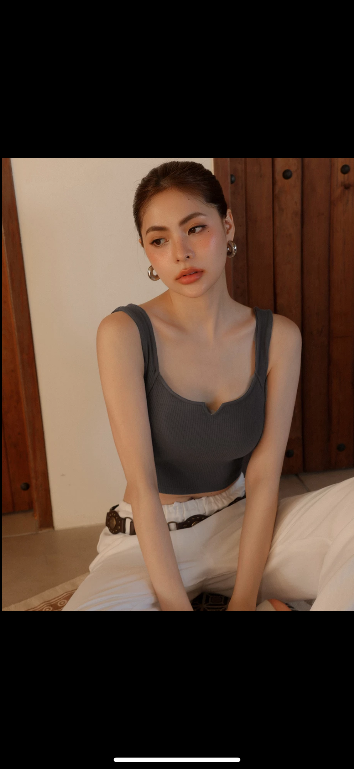 Made from soft, stretchy ribbed fabric that moves with the body for zero restriction. The small V-cut neckline subtly reveals the bust, while wide shoulder straps provide support and coverage. The cropped length creates a slimming effect and pairs perfectly with high-waist bottoms to elongate proportions, making it a daily wardrobe essential.