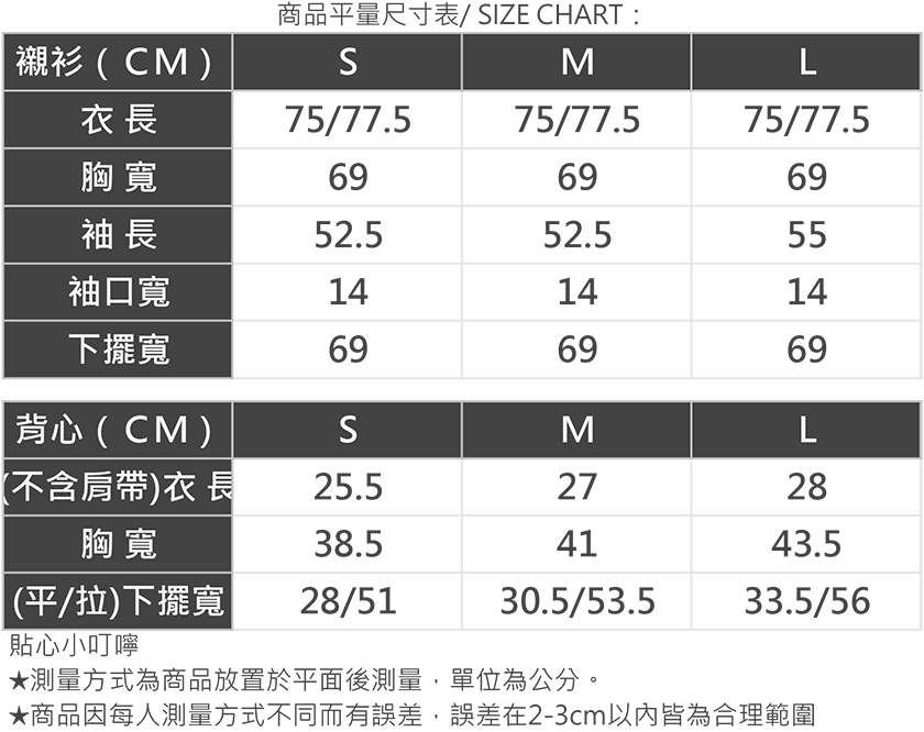 商品平量尺寸表