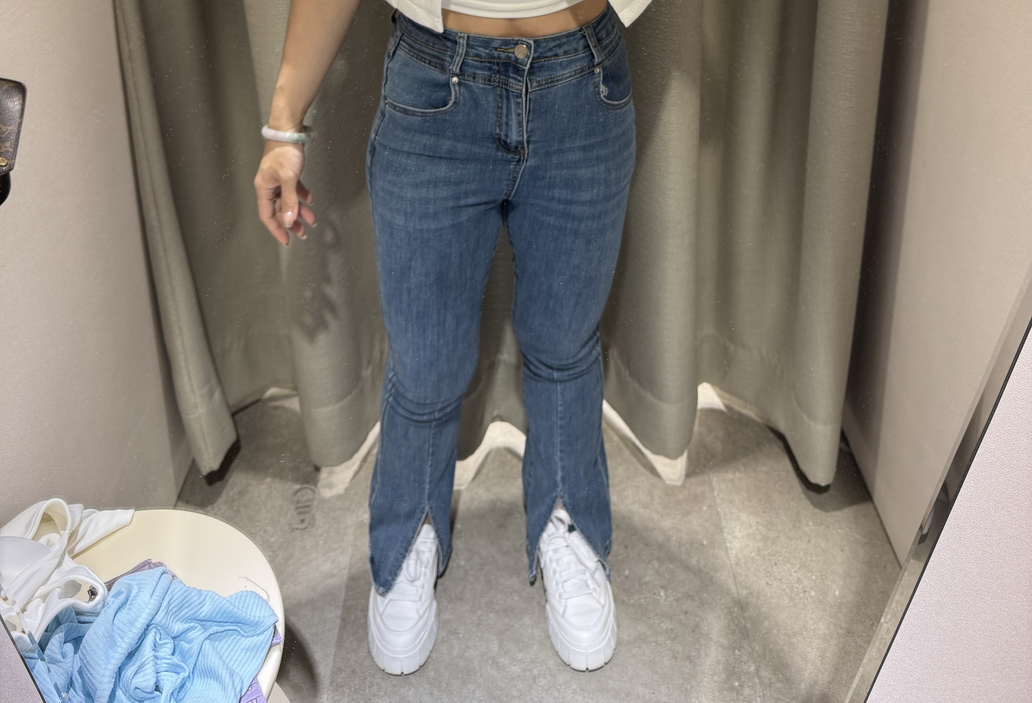 好喜歡這件版型但長度較長褲口較寬 需要搭配高筒鞋
