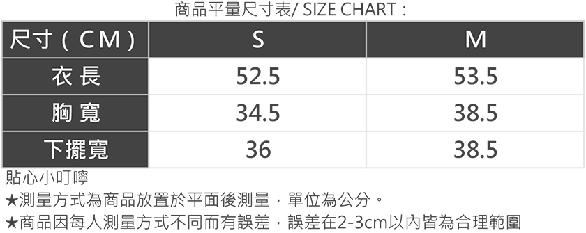 不確定自己的尺寸嗎?別擔心,我們幫你搞定。你可以參考下方商品評量尺寸表或是身材測量方式找到最適合你的尺碼,如果還有疑問也歡迎隨時聯繫我們的客服團隊。