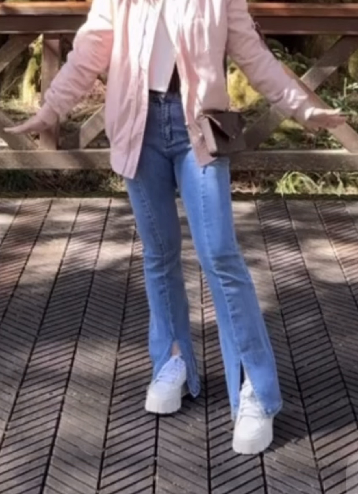 Slim Fit Slit Hem High Waisted Jeans Denim Flared Pants