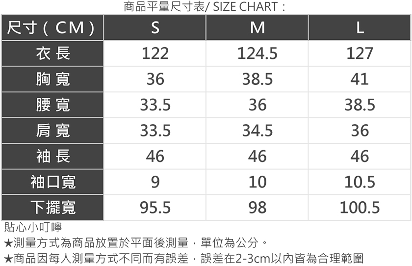 | 版型 | 貼身 | 1 | 2 | 3 | 4 | 5 | 寬鬆 |