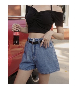 High Waist Washed Jeans Denim Shorts with Pocket Details