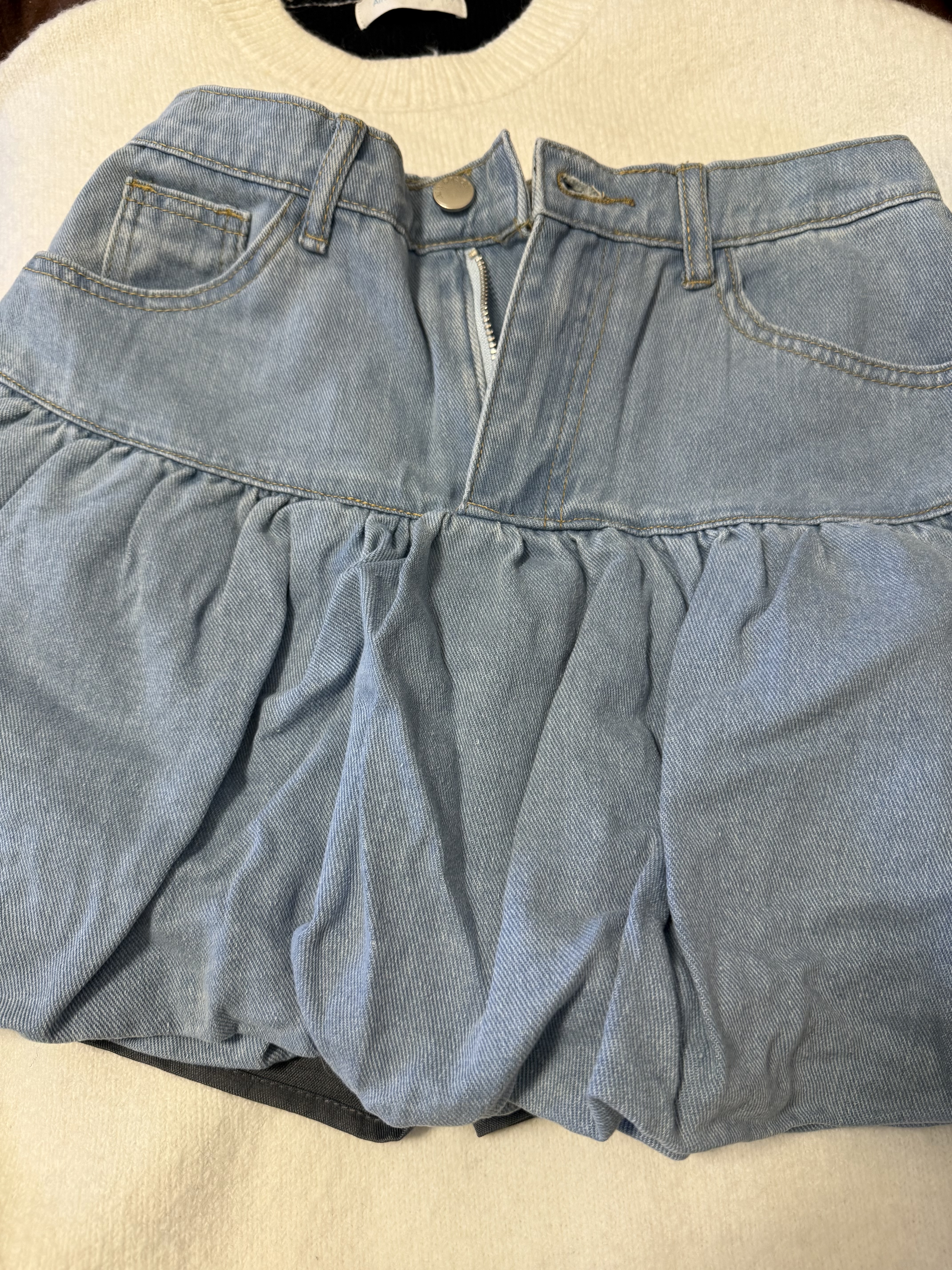 Washed Jeans Denim Gathered Bubble Mini Skirt