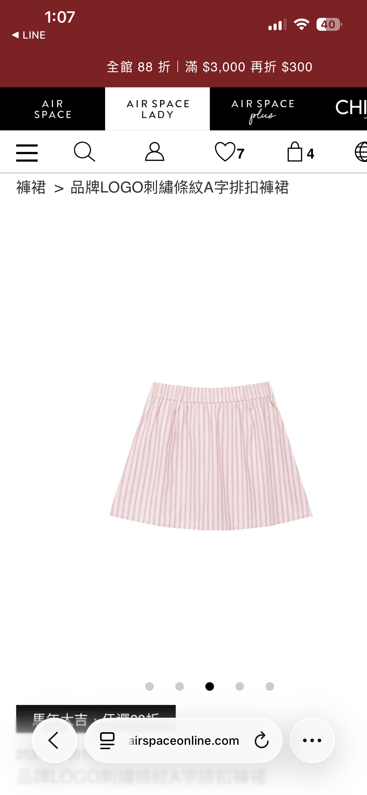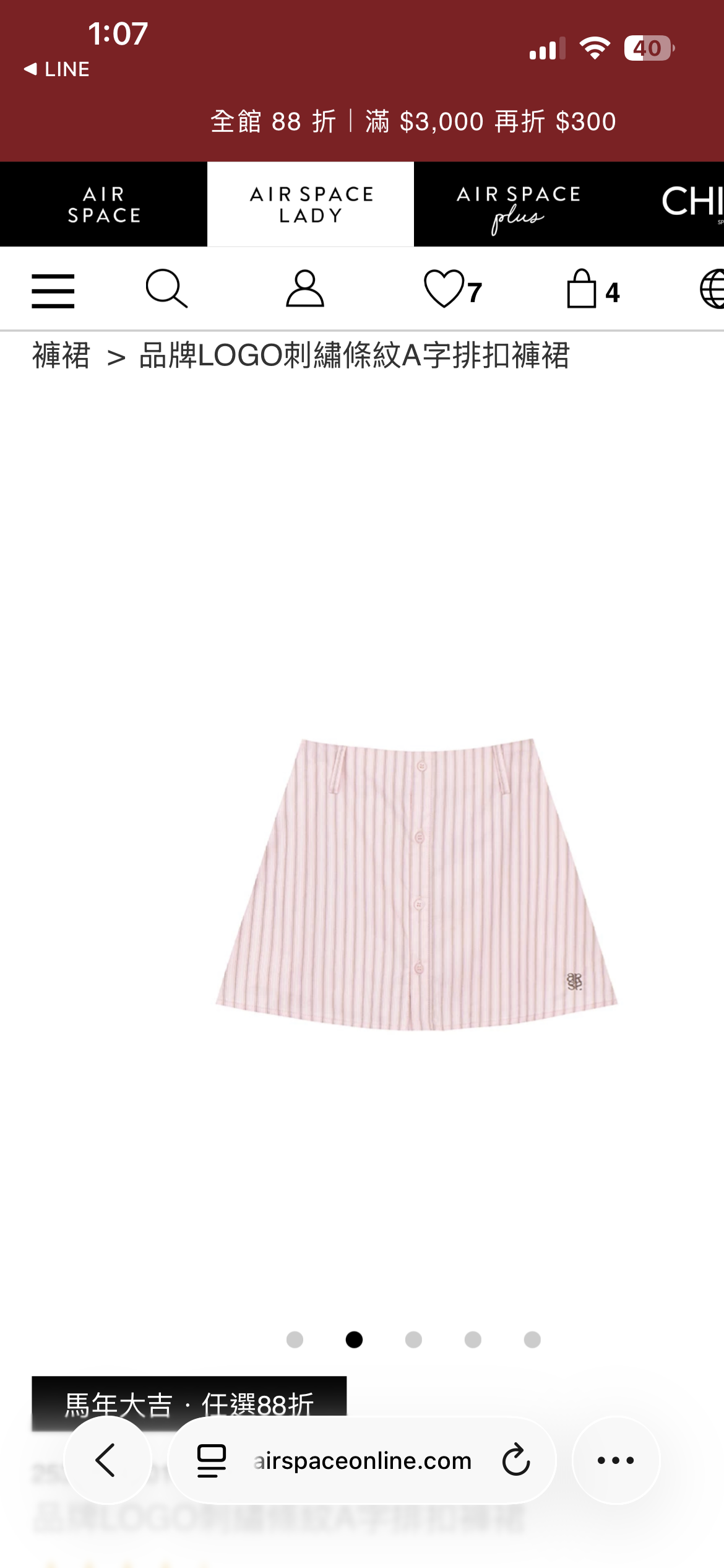 AIR SPACE Logo Embroidered Striped Button Front A Line Skorts