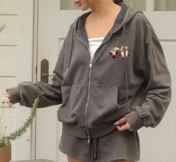 【DINOTAENG】Graphic Zip-Up Hoodie