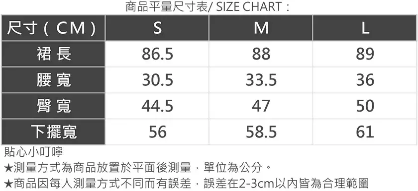 不確定自己的尺寸嗎?別擔心,我們幫你搞定。你可以參考下方商品評量尺寸表或是身材測量方式找到最適合你的尺碼,如果還有疑問也歡迎隨時聯繫我們的客服團隊。