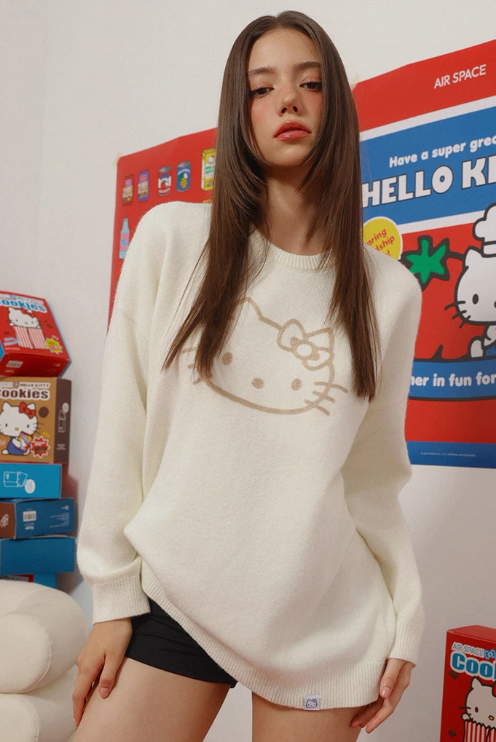 【Hello Kitty Collaboration】Relaxed Fit Pullover with Hello Kitty Outline Motif