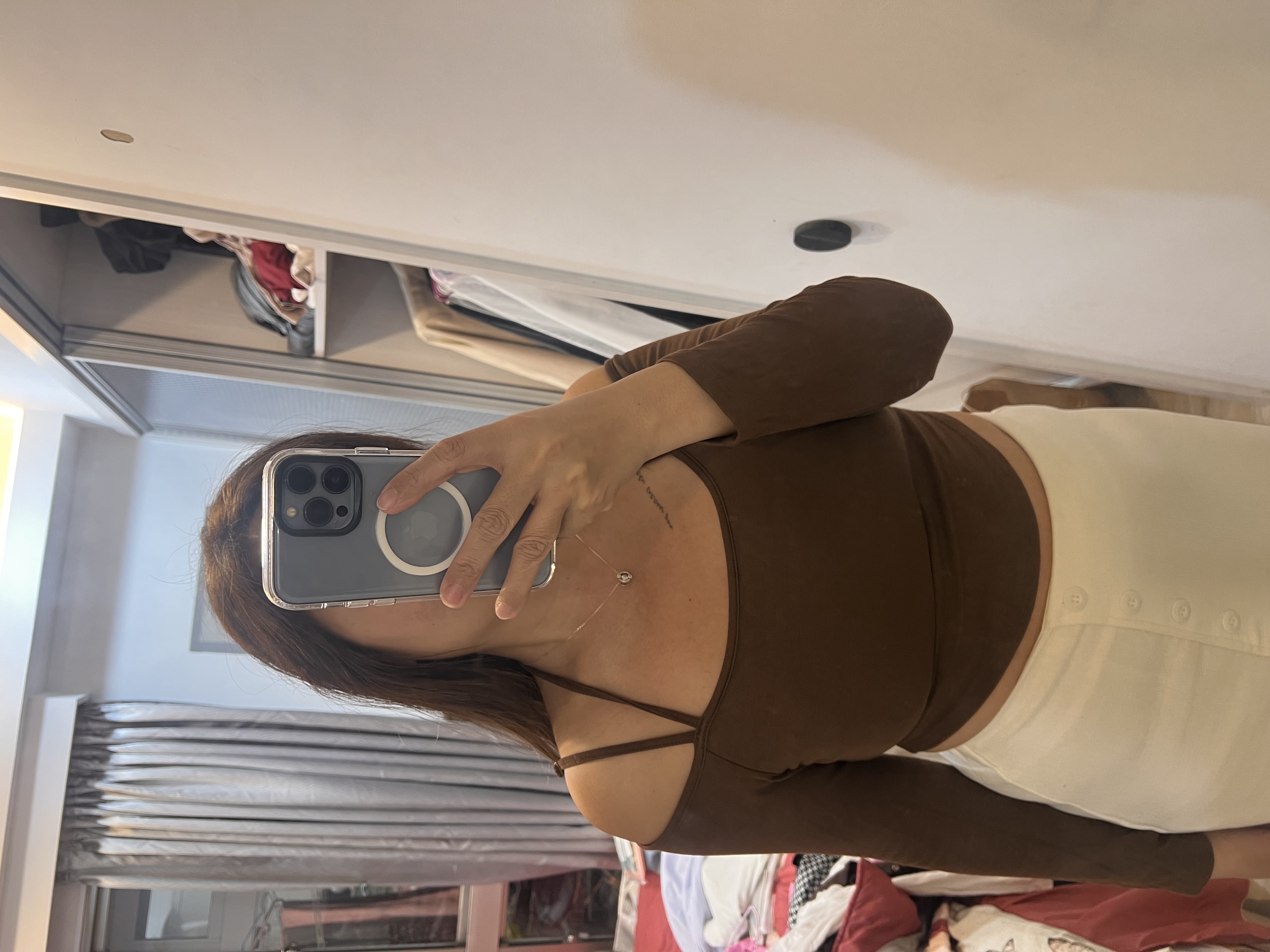 有點小後悔的一件,背後需要自己綁,方便性比較差一點 但造型可以算多變。