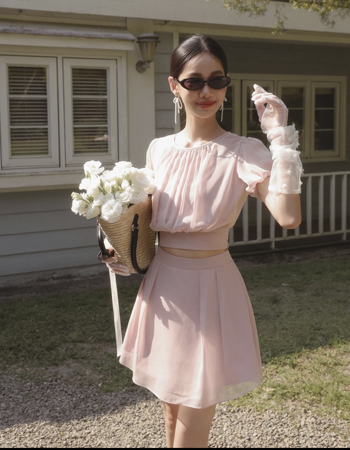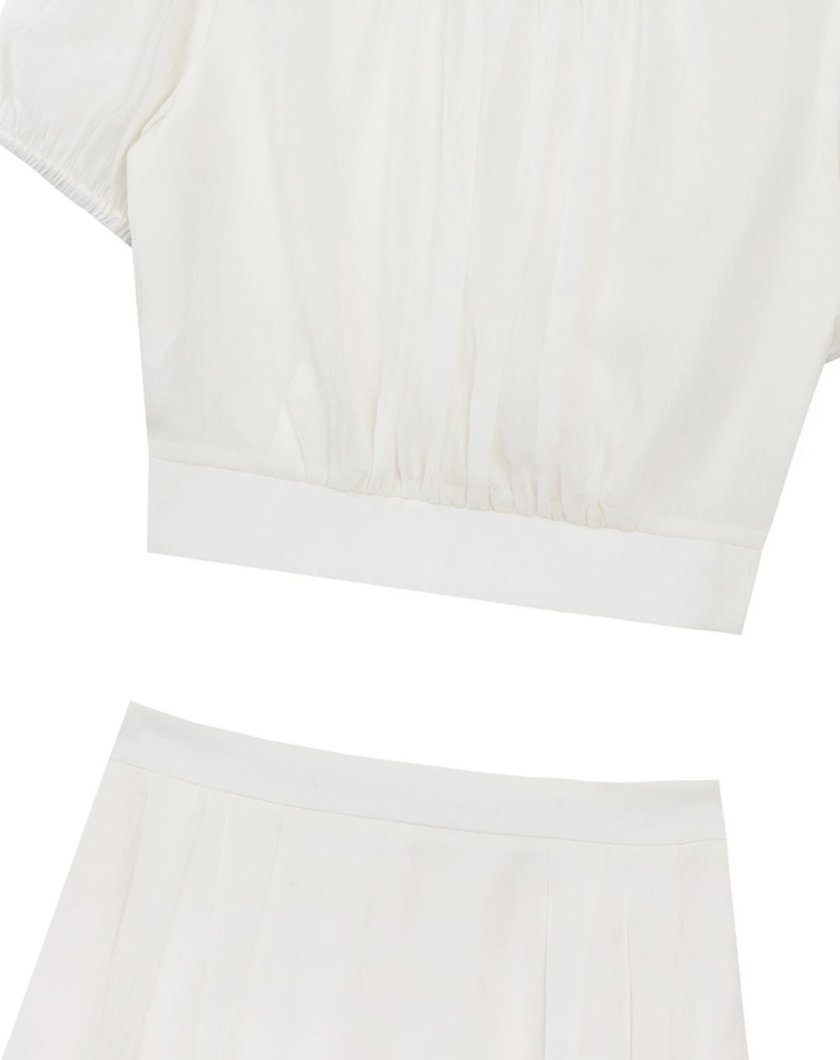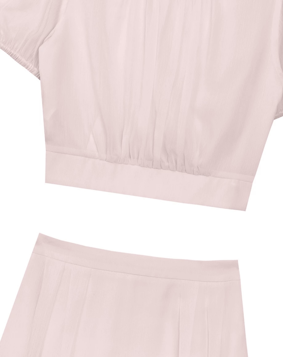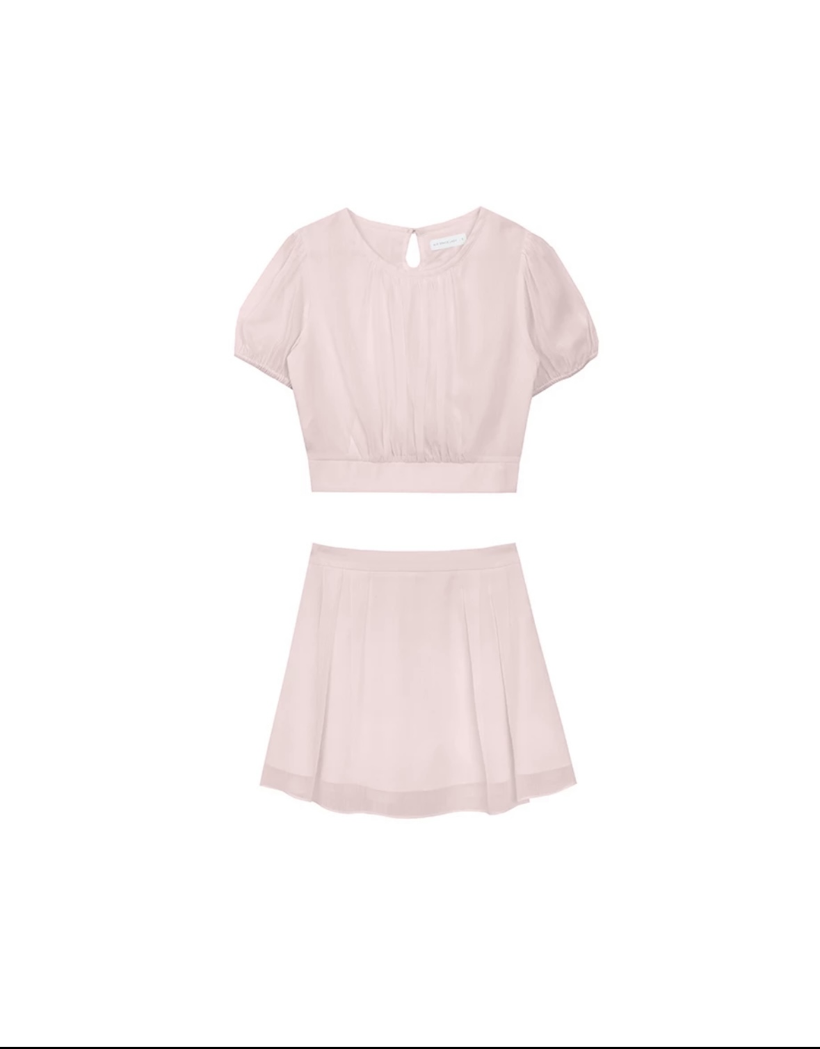 Sheer Puff Sleeve Chiffon Top with High Waist Pleated Mini Skirt Set Wear
