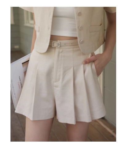 Product Description: Comes with belt / Pleated design / Elastic waistline / Side zipper closure