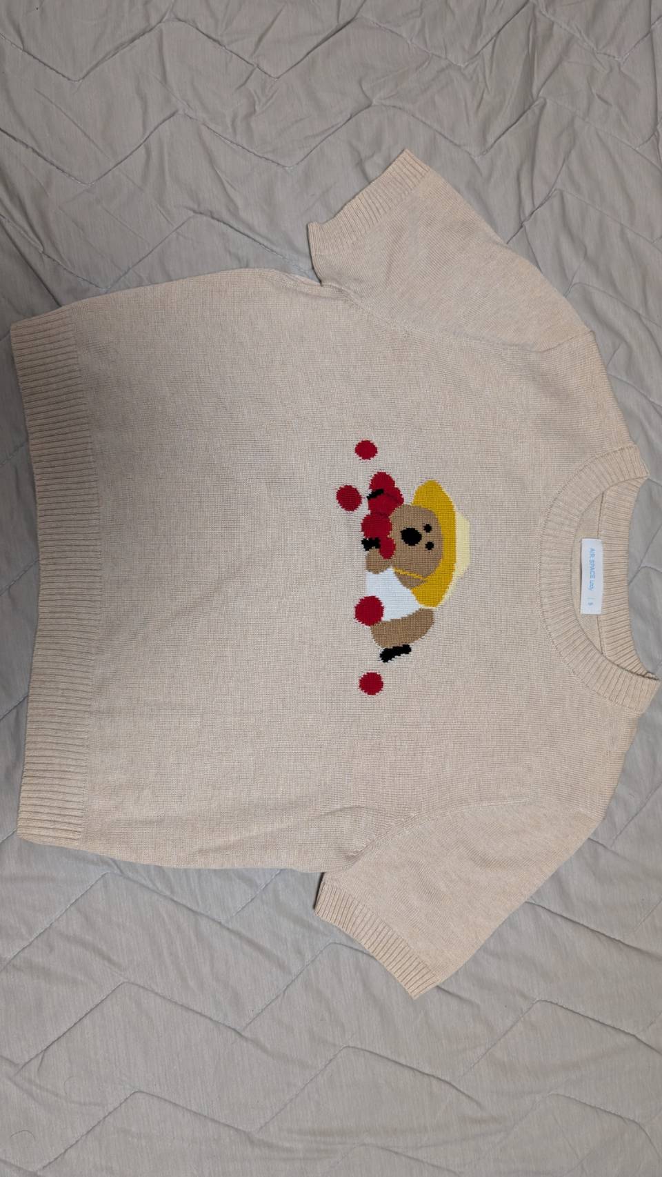 這件 IP 真的超可愛,圖案細節做得很精緻,實品跟照片一致。針織材質親膚不刺,厚薄適中,夏天穿也不會太悶;版型偏合身但不緊,搭牛仔褲或短裙都很好看。唯一可惜是當時沒有特價,原價偏高一點,但喜歡聯名的話還是很值得收。