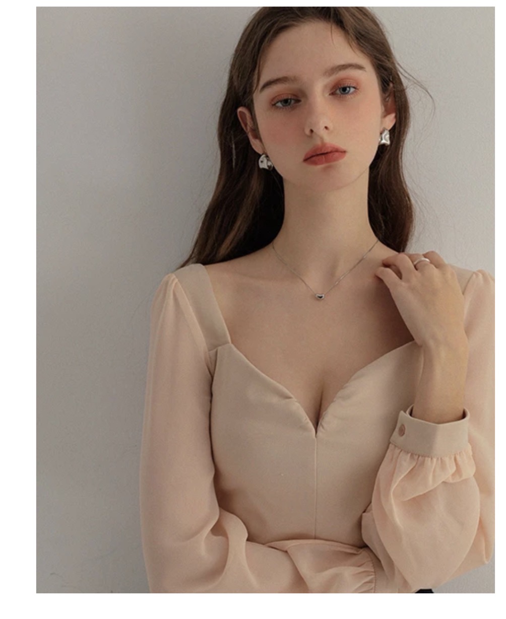Sweetheart Neckline Sheer Latern Sleeve Patchwork Top