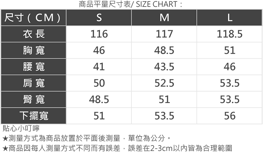不確定自己的尺寸嗎?別擔心,我們幫你搞定。你可以參考下方商品評量尺寸表或是身材測量方式找到最適合你的尺碼,如果還有疑問也歡迎隨時聯繫我們的客服團隊。