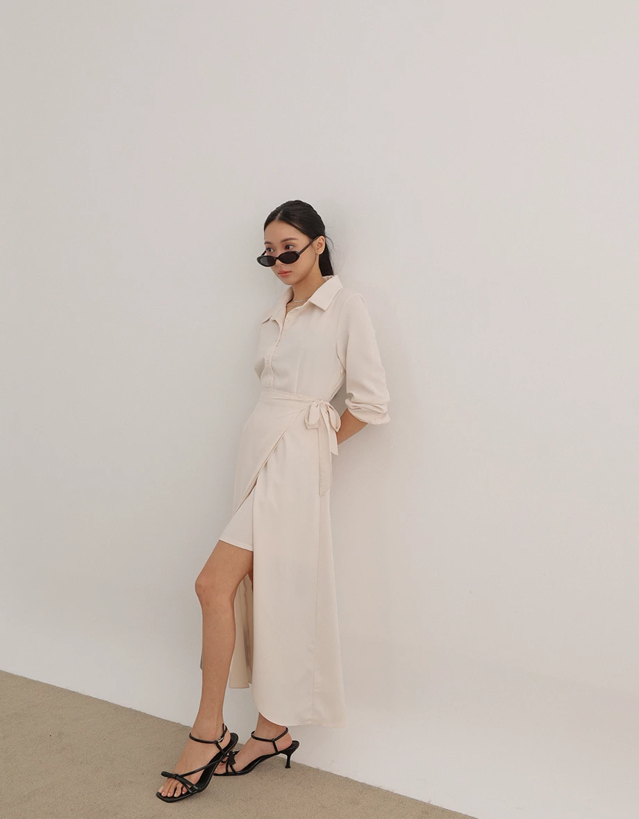 2 Way Collared Button Up Wrap Style Maxi Dress Set Wear