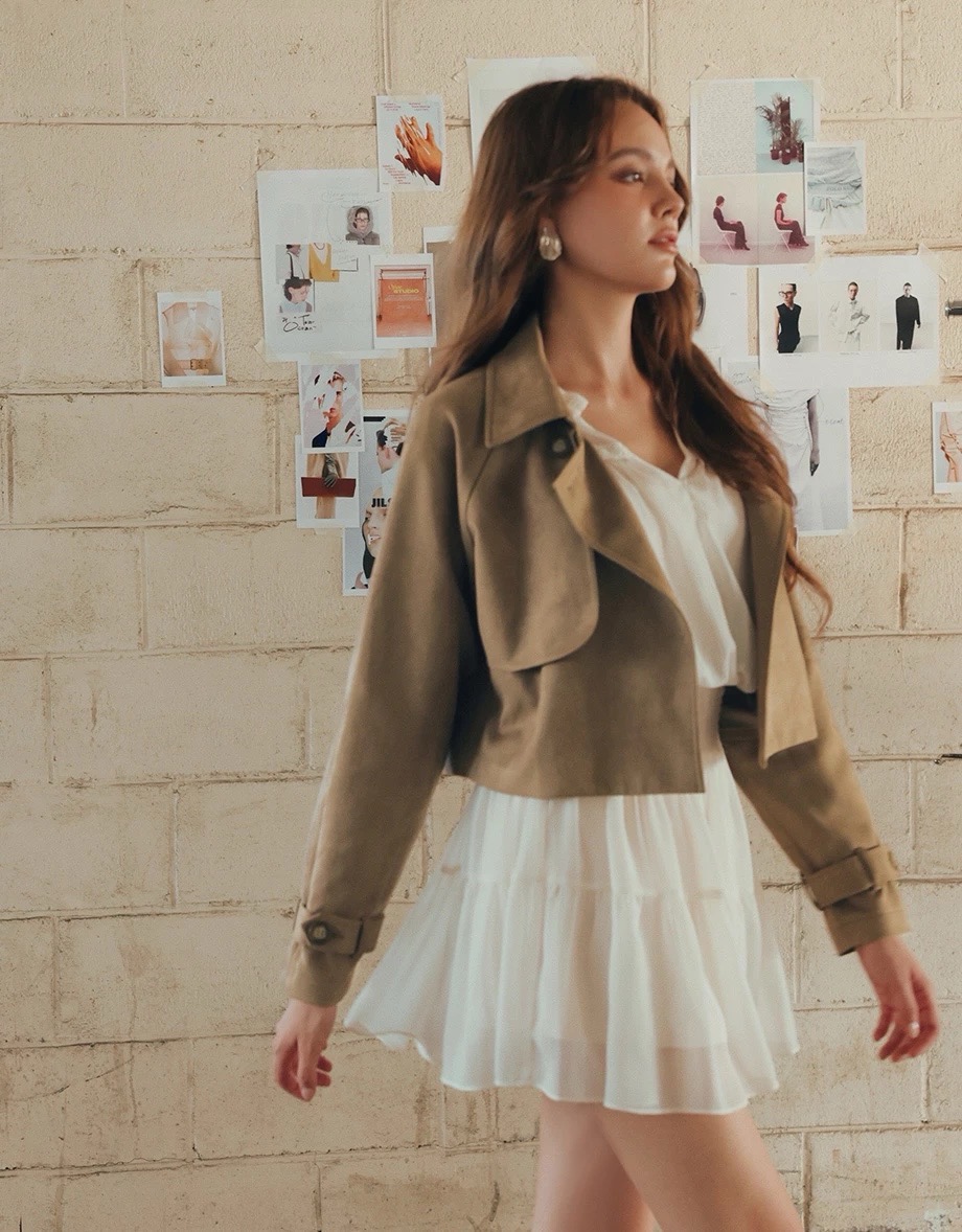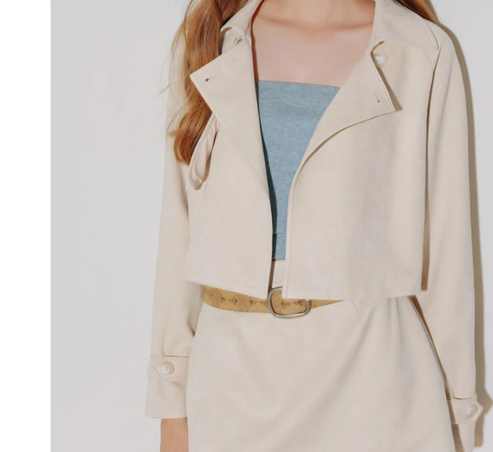 Classic Collar Faux Suede Cropped Trench Jacket