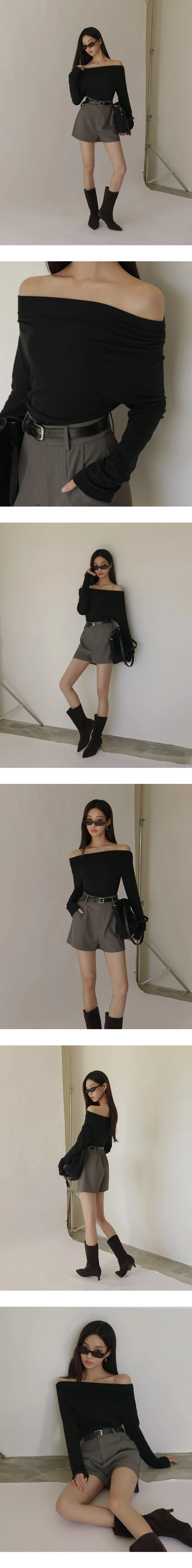 Heat Tech Plain Off Shoulder Long Sleeve Fitted Knit Top