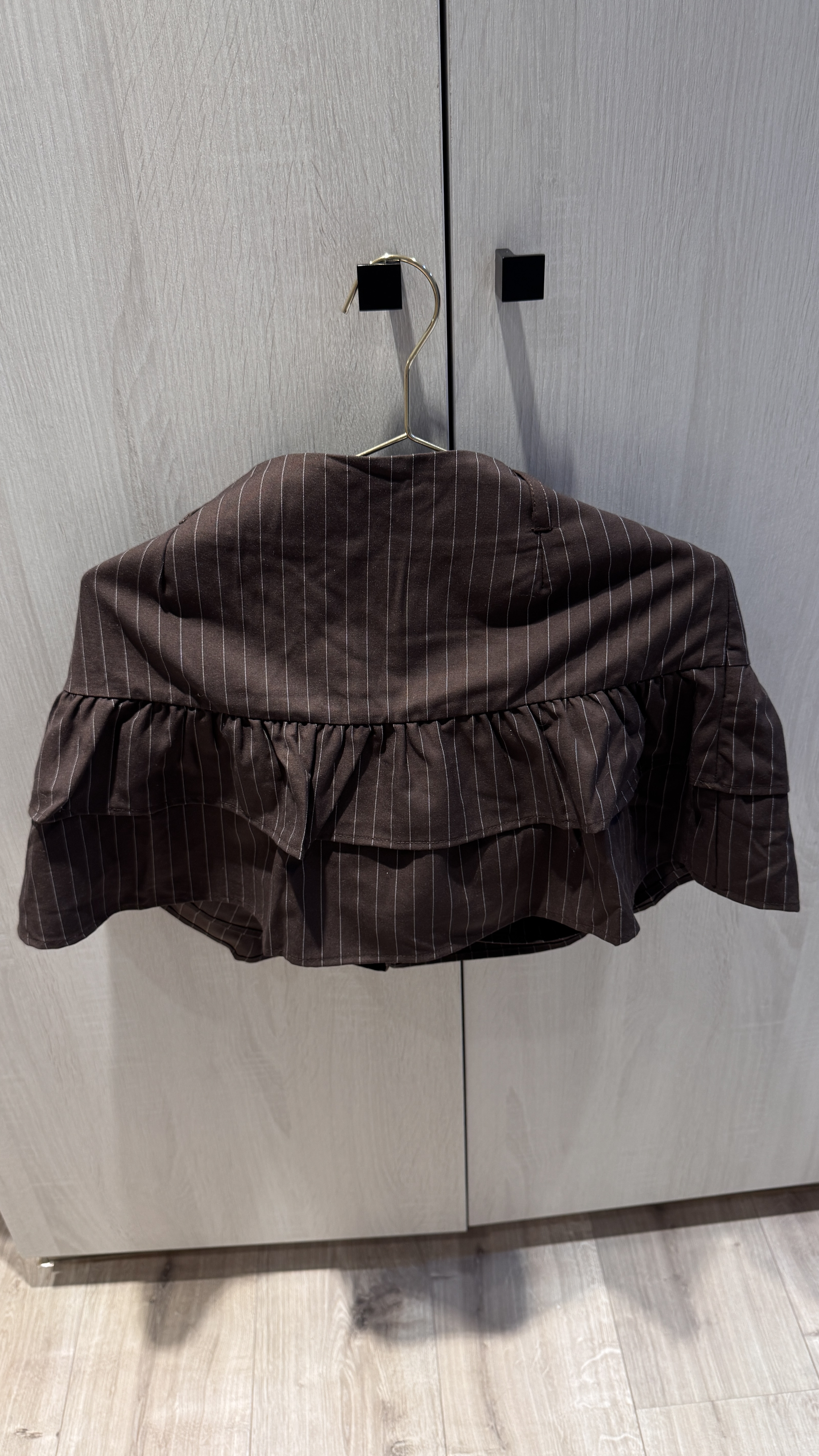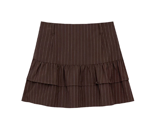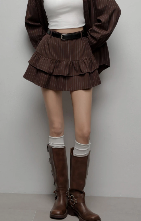 High Waist Pinstripe Layered Ruffle Mini Skirt