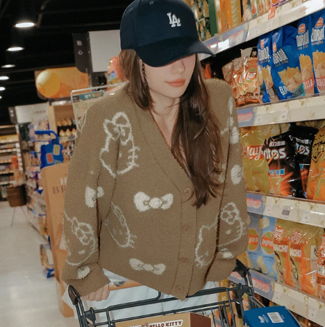 【Hello Kitty Collaboration】Hello Kitty All-Over Print Fluffy Knit Cardigan