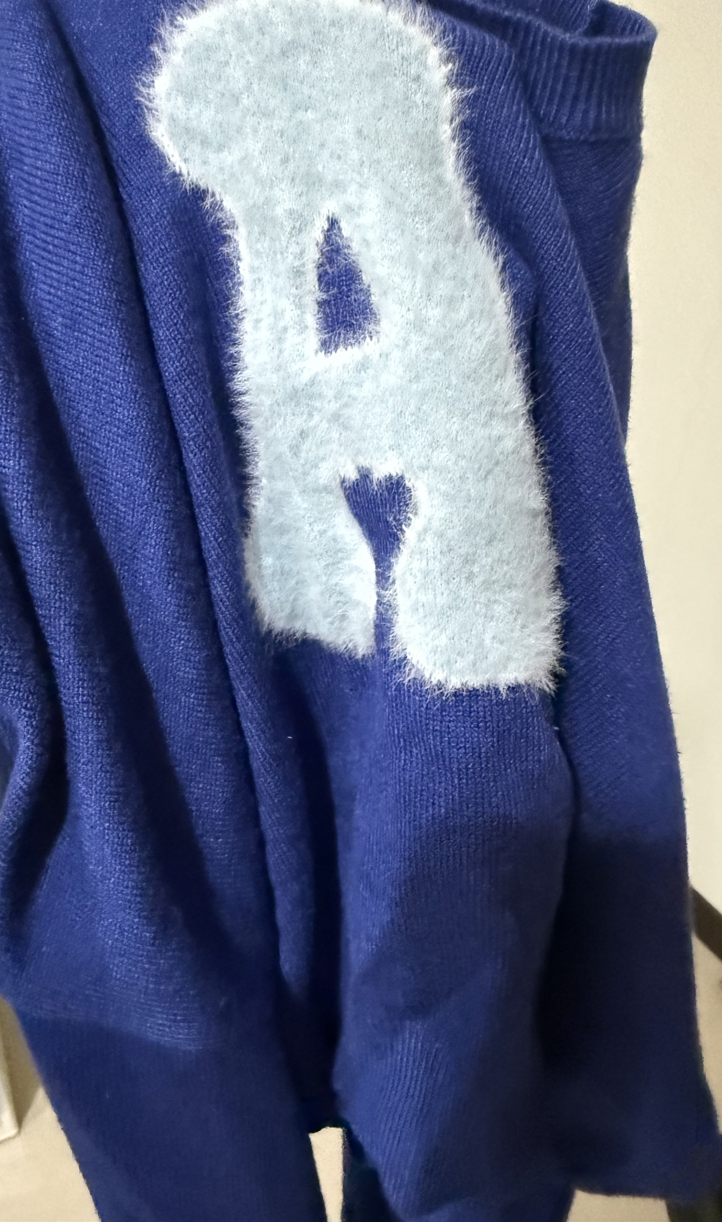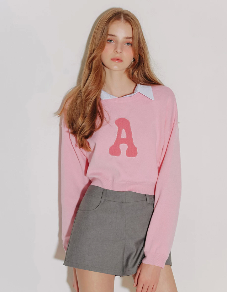 Fuzzy Letter Embroidered Cropped Knit Sweater