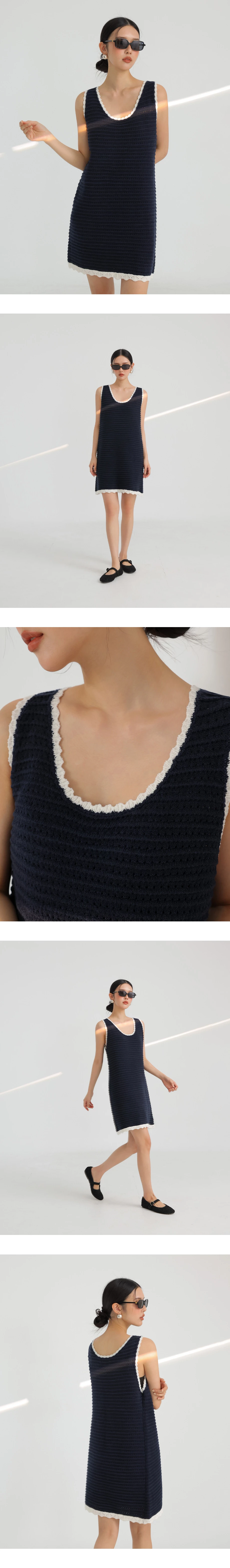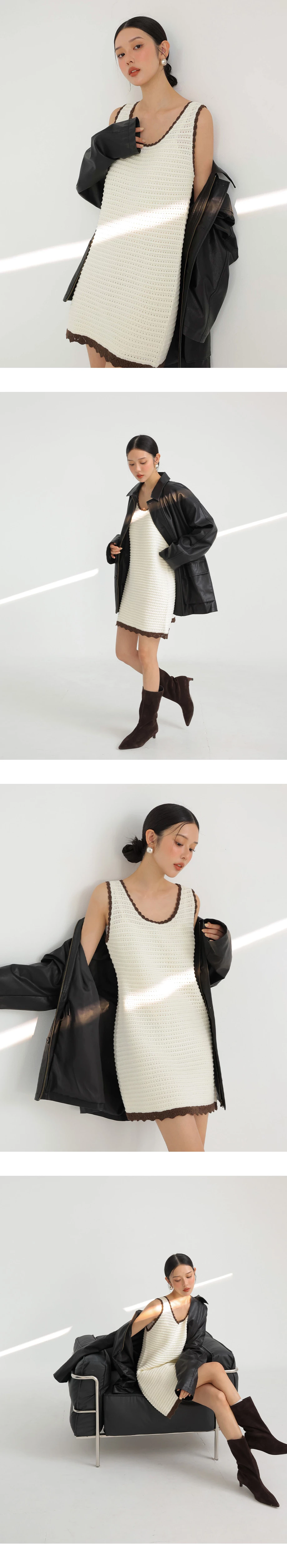 撞色花邊針織背心短洋裝(附背心裙)