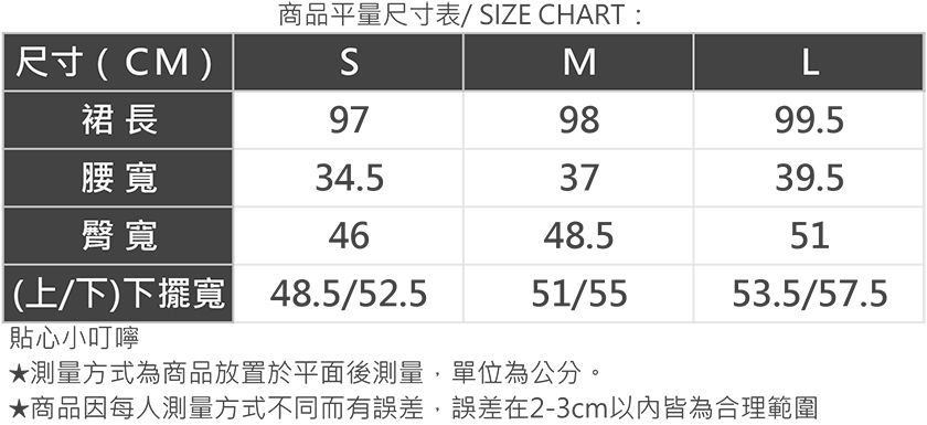 你可以參考下方商品評量尺寸表或是身材測量方式找到最適合你的尺碼,