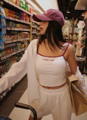 酒紅色配白色穿起來很有活力