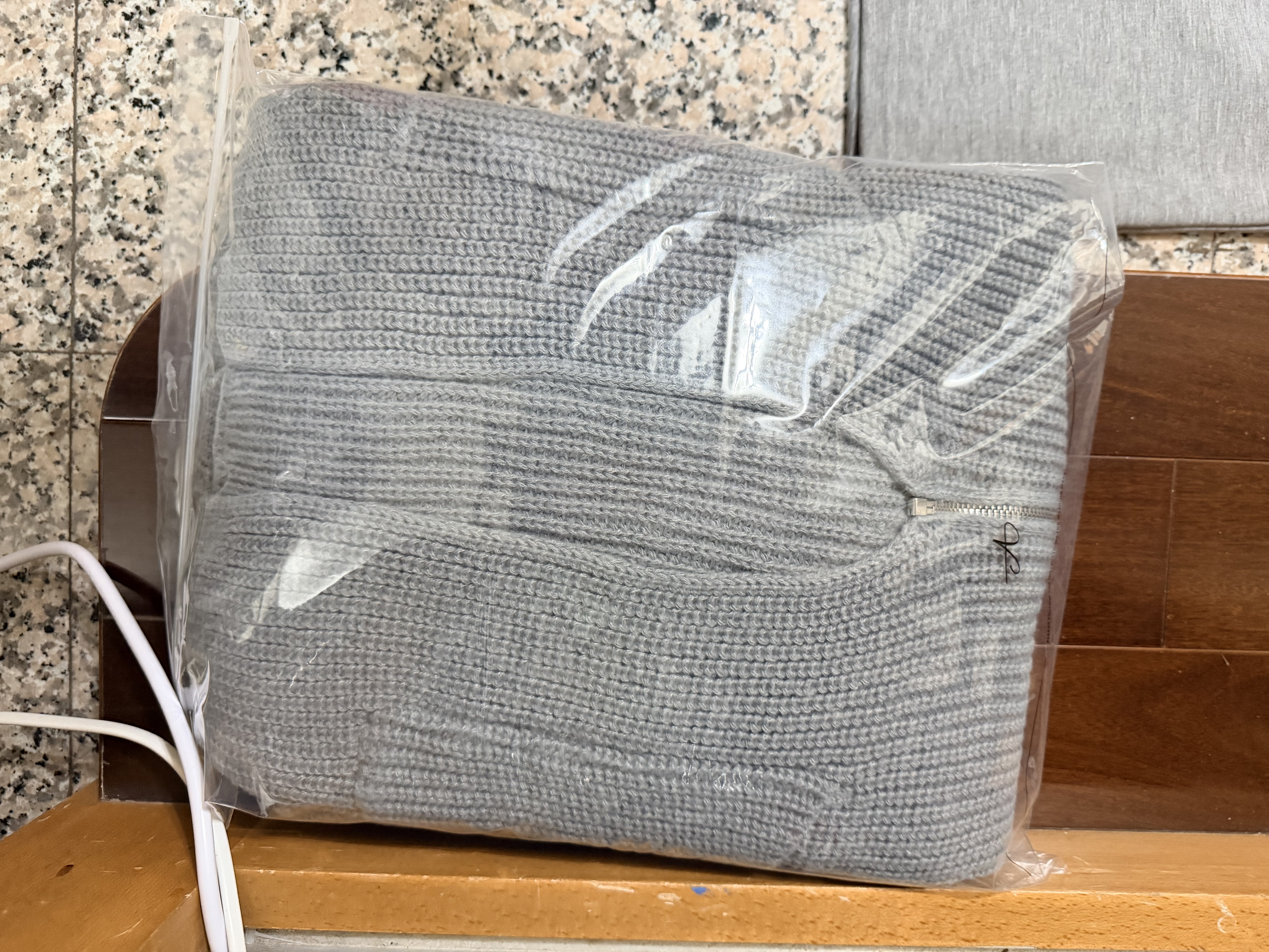 與圖片略有不符,因為布料厚重,所以實際穿起來有一點鬆垮垮的感覺,但坐拍的時候是好看的,且很保暖,所以總體上還是很喜歡的