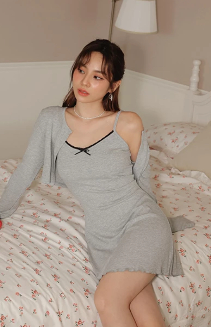 Ruffled Hem Mini Dress with Long Sleeve Cardigans Set Wear