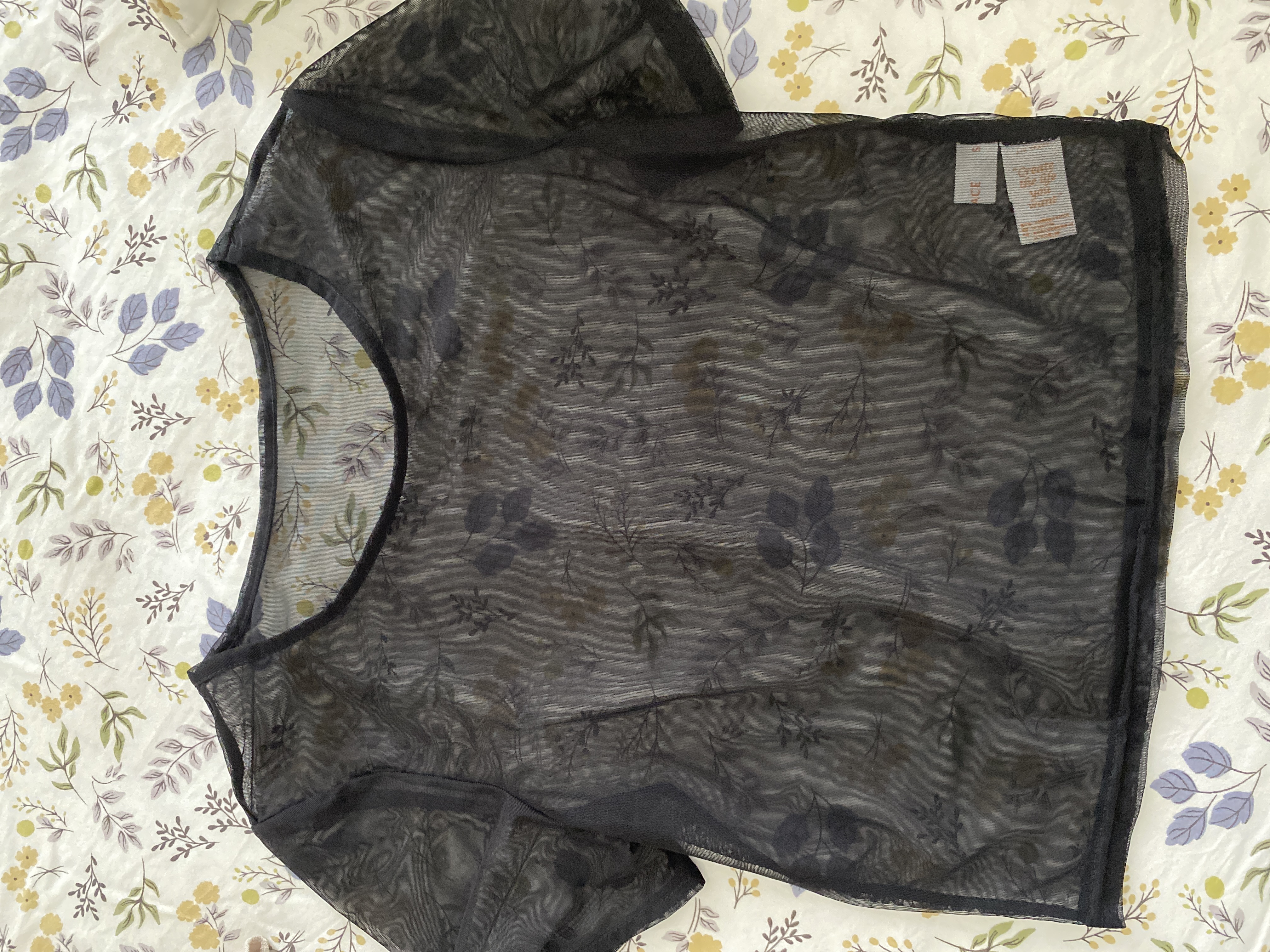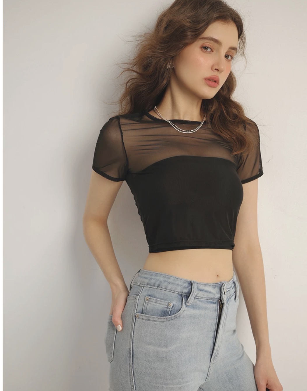 Crew Neck Sheer Mesh Short Sleeve Crop Tee