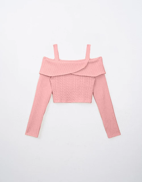 Cut Out Shoulder Cable Knit Top