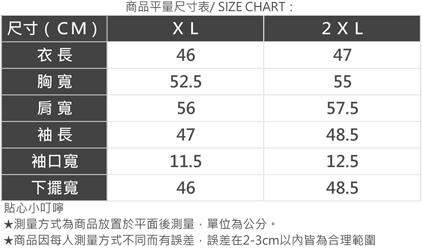 不確定自己的尺寸嗎?別擔心,我們幫你搞定。你可以參考下方商品評量尺寸表或是身材測量方式找到最適合你的尺碼,如果還有疑問也歡迎隨時聯繫我們的客服團隊。