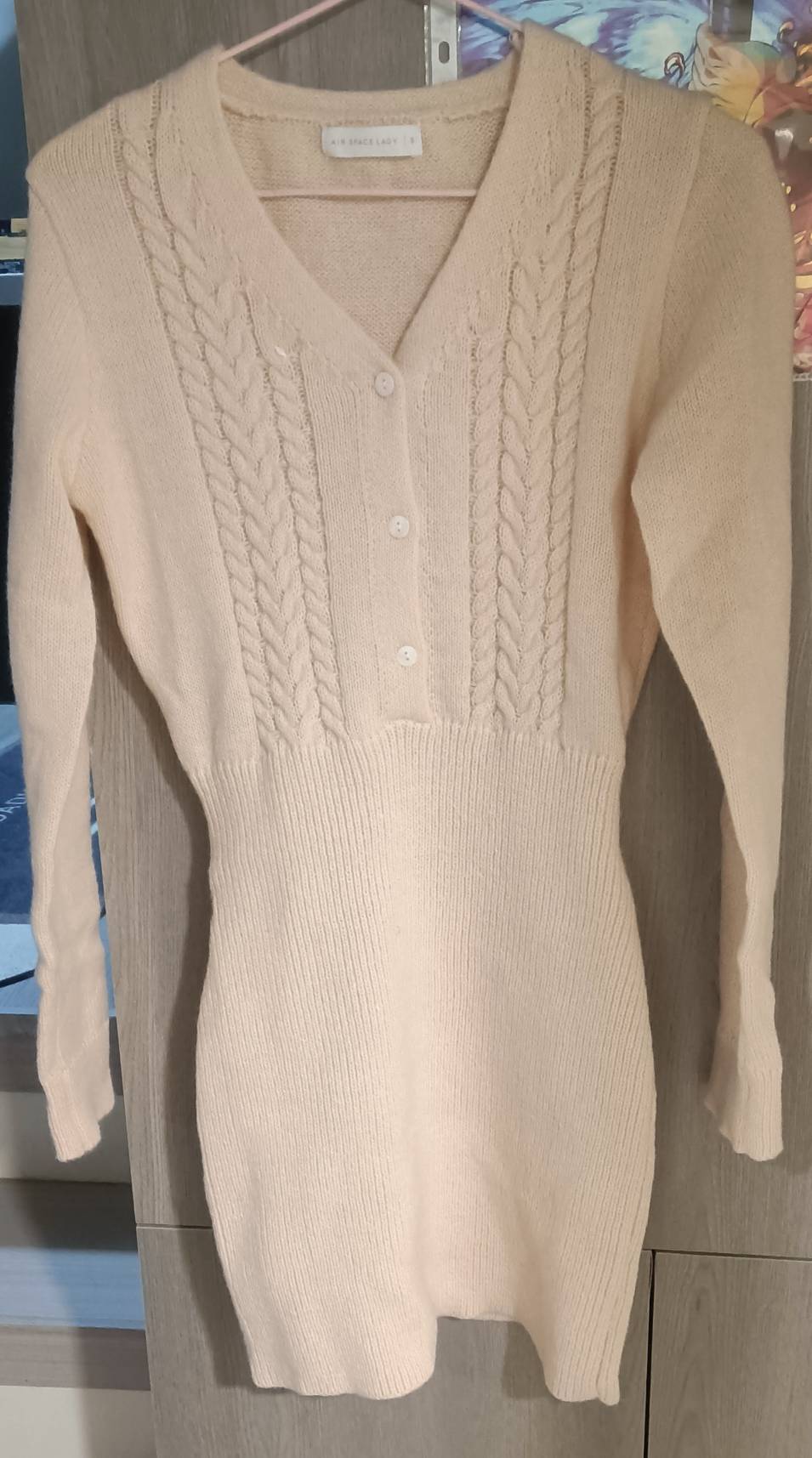 麻花紋路很有質感,整體看起來很顯氣質。布料彈性很好、貼身但不勒,包臀版型很修飾曲線,而且腹部那段不會把小腹放大,穿起來比想像中友善。長度跟剪裁也很適合通勤或約會,搭外套/長靴都很有型。