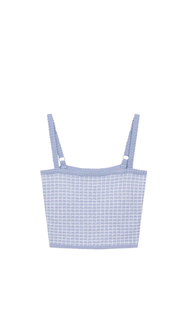 Checkered Texture Adjustable Strap Ribbed Knit Padded Crop Top