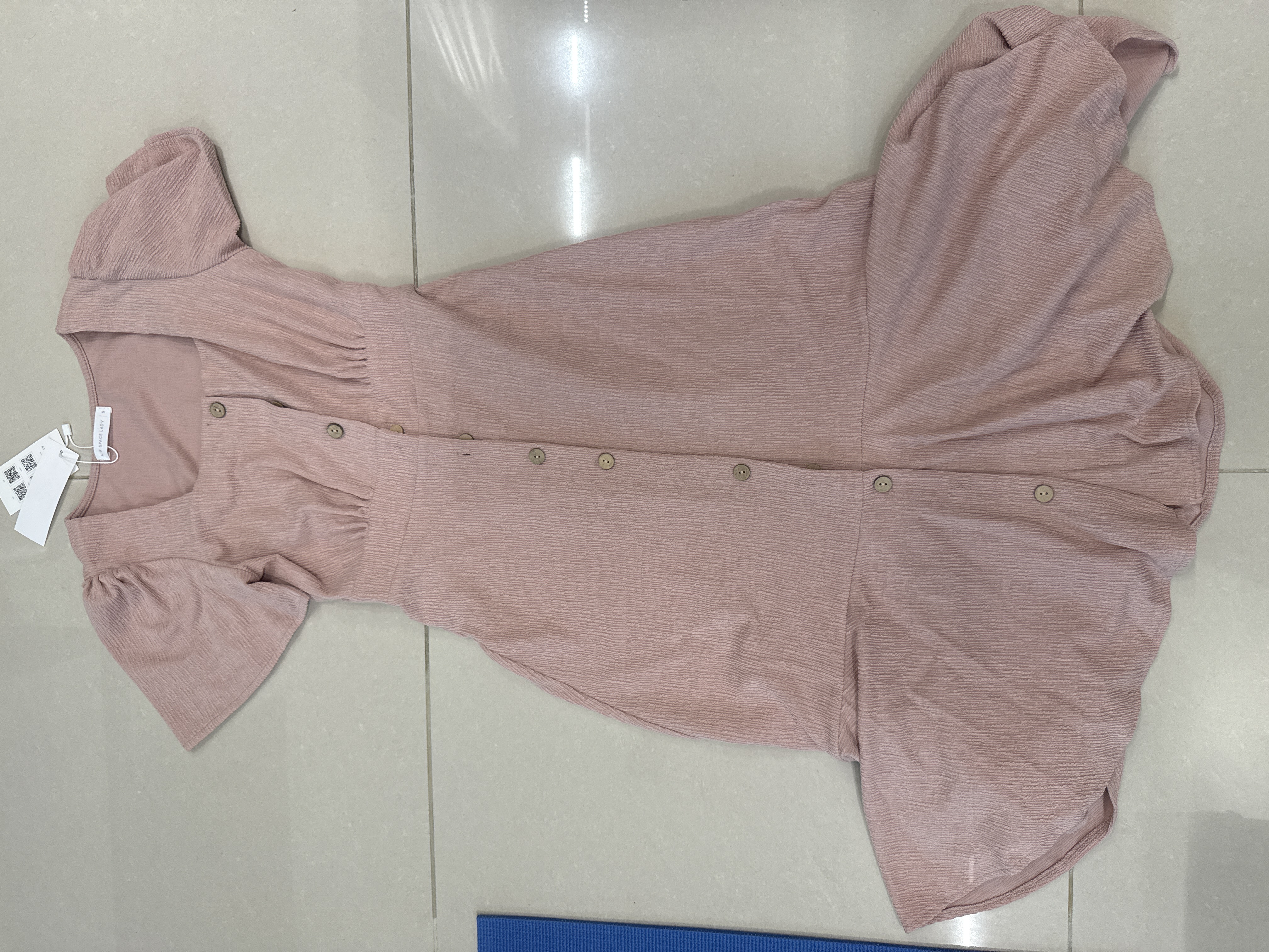 方領排扣傘袖收腰荷葉裙擺長洋裝