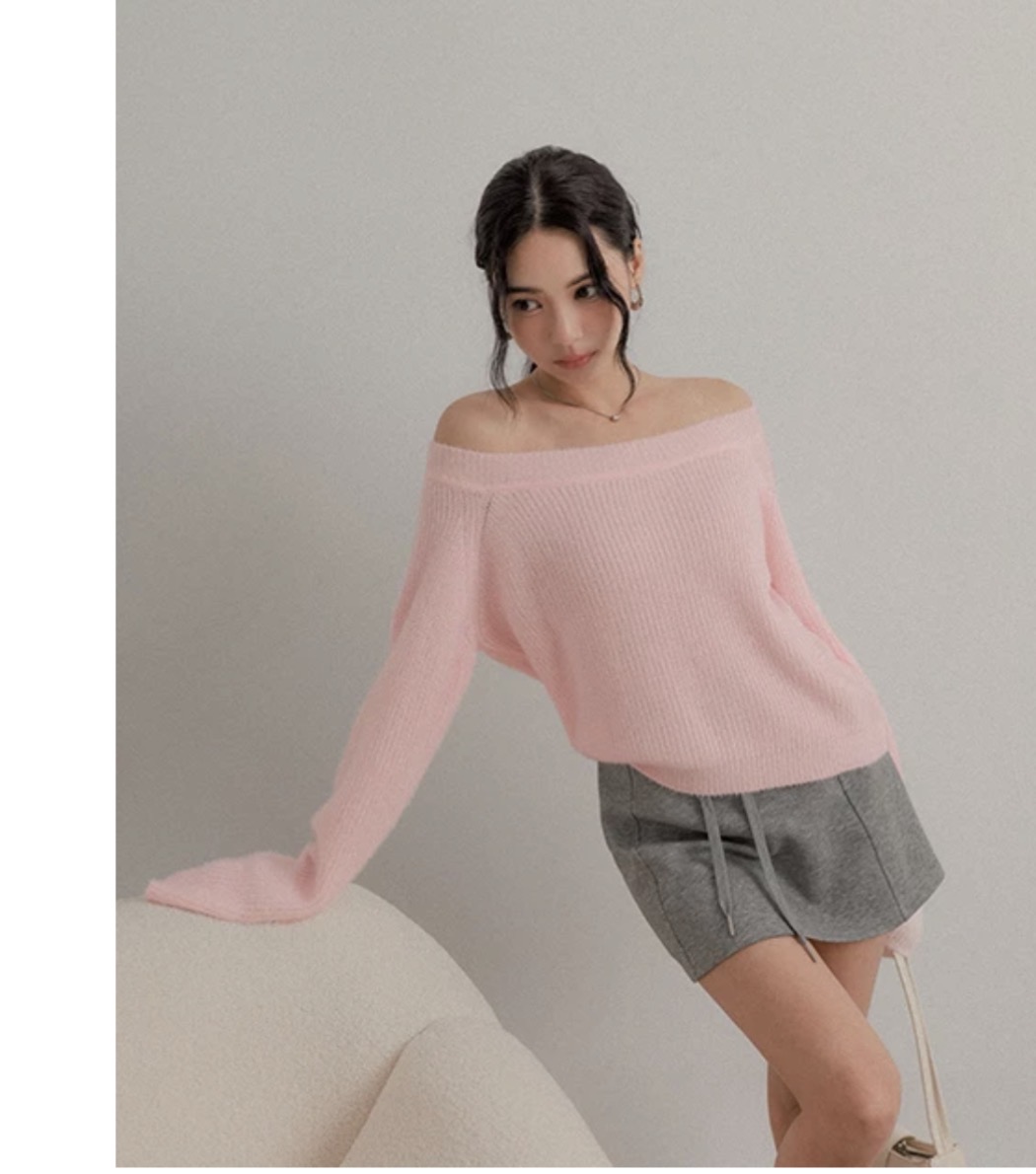 Asymmetric Shoulder Basic Knitted Top