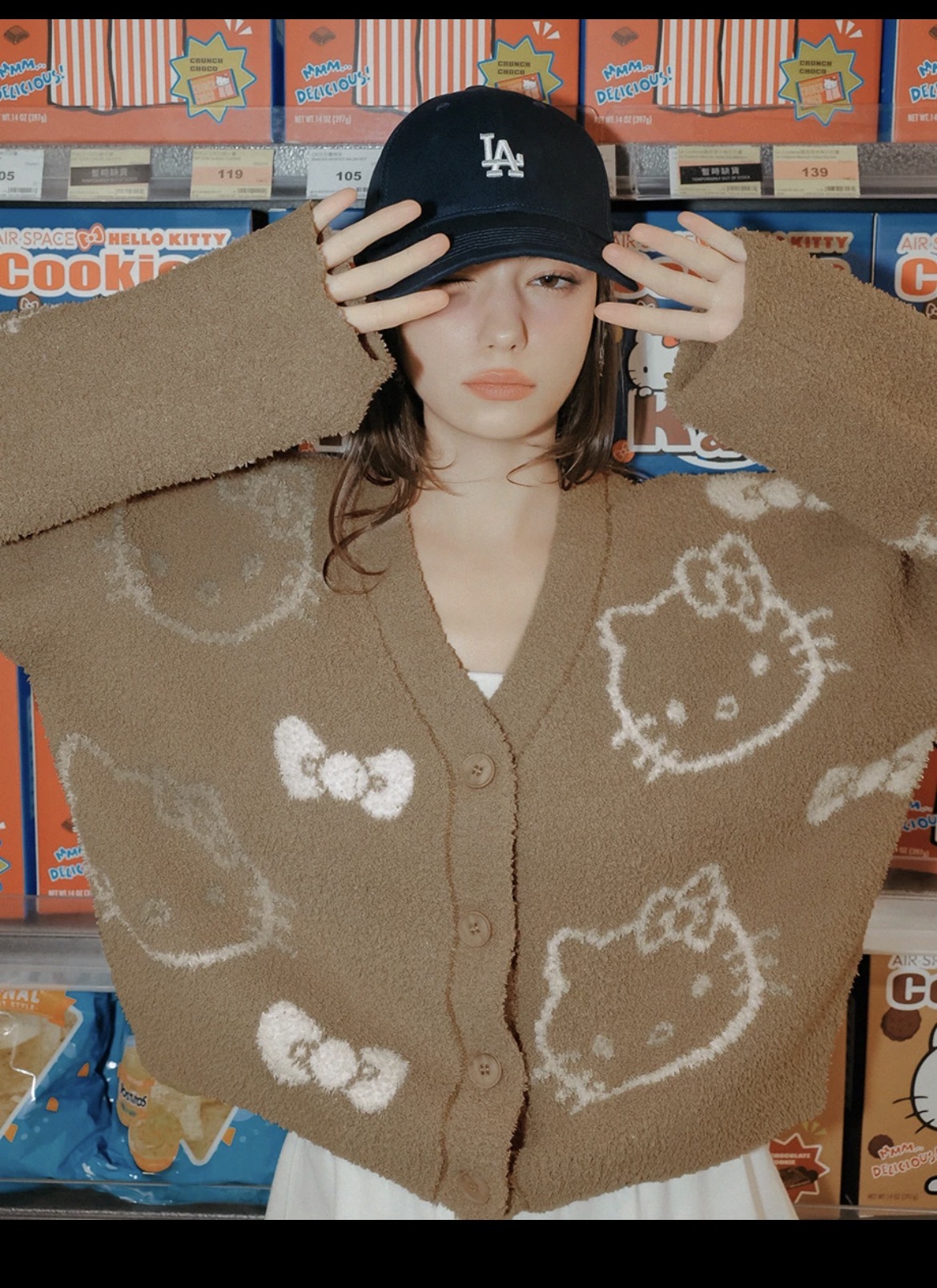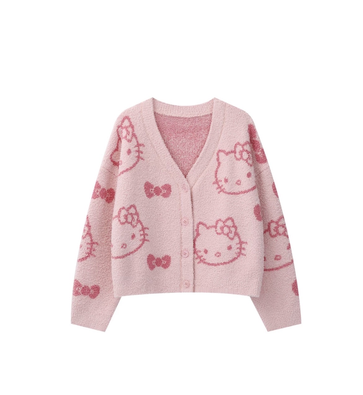 【Hello Kitty Collaboration】Hello Kitty All-Over Print Fluffy Knit Cardigan